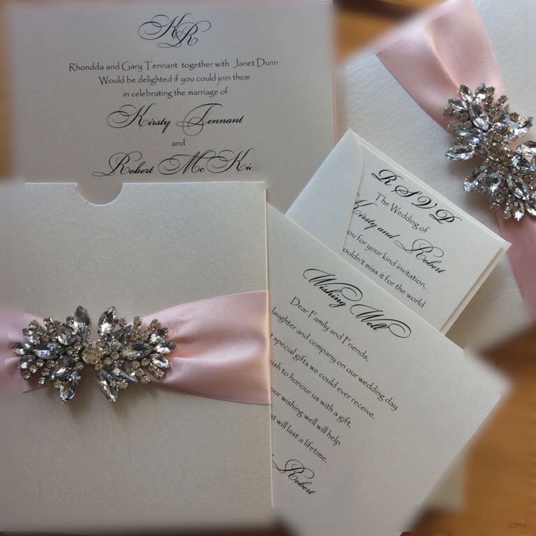 A huge thank-you to Virginia for producing our amazing wedding stationery. We got lots of comments on how impressed people were with everything - from the invitations ("like a work of art" was one comment), through to the menus and place cards. The diamantes went down especially well with the ladies...! We wouldn't hesitate to recommend your services to anyone else."